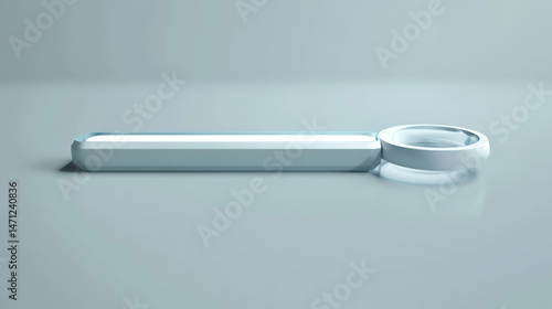 Minimalist white search bar with magnifying glass icon on clean gray background, copy space for text. Modern web design, user interface, digital technology and online search concept.