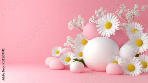 Minimalist White Spheres with Soft Pink Pillows on a Light Gray Concrete Surface – Modern Still Life Photography