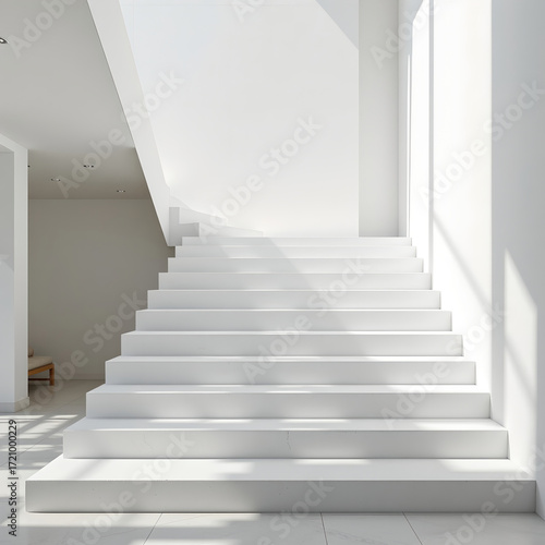Minimalist white stair white staircase modern interior clean design soft natural light pastel texture