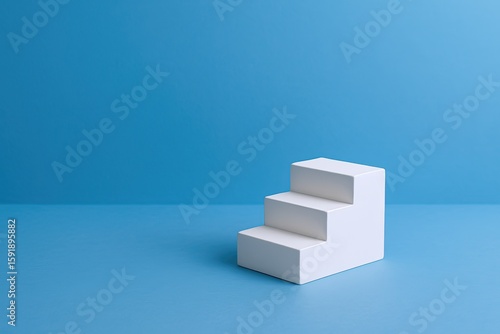 Minimalist White Three-Step Platform on Bright Blue Background for Product Display.