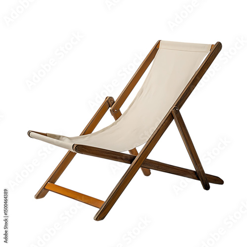 Minimalist Wooden Beach Chair with a Sleek Fold Awaisolated on Transparent Background Isolated on Transparent Background