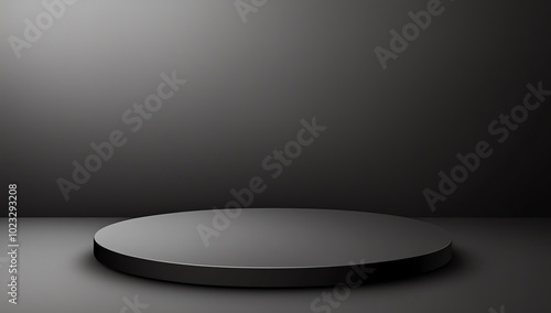 Minimalistic black platform on a dark background, perfect for showcasing products or art in a modern setting.