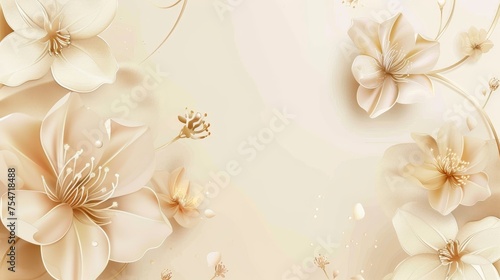 Minimalistic design invitation card with beige flowers