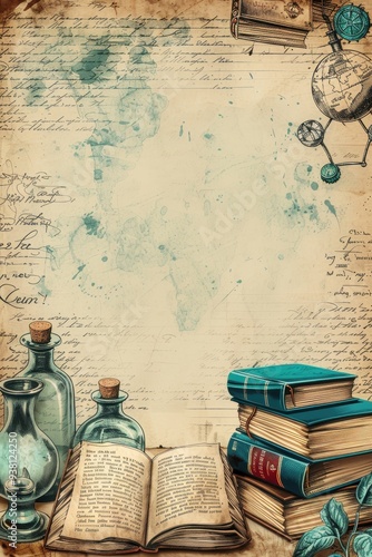 Minimalistic Educational Background with Outlined Books and Icons for Text or Images