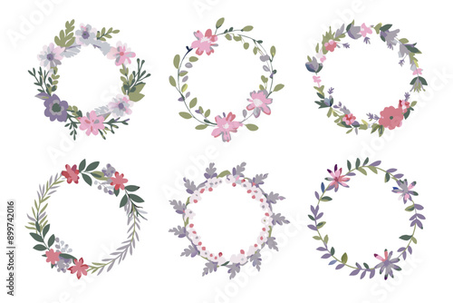 Minimalistic Flowers Wreaths Vector Set