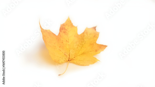 Minimalistic image of a single golden autumn leaf isolated on a clean white background. Perfect for concepts like fall, seasonal change, nature, minimalism, elegance, and botanical design.