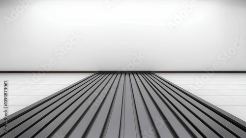 Minimalistic Interior Space with Black Striped Floor and White Walls Perfect for Modern Design and Creative Projects in Stock Photography