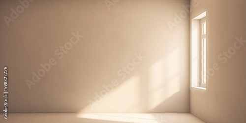 Minimalistic light beige wall in an empty room for presentation background. Elegant lighting with abstract shadows. - Generative AI