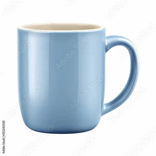 Minimalistic light blue ceramic mug with a smooth texture and a classic handle, designed for coffee, tea, or hot beverages, isolated on transparent background.