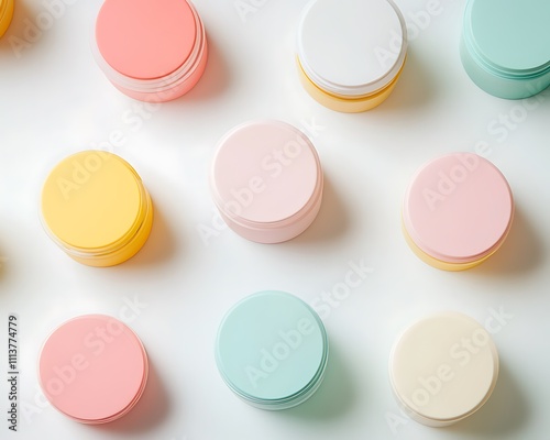 minimalistic packaging designs on pastel, Pastel Cosmetic Jars Collection on Elegant Surface