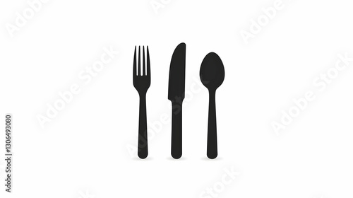 Minimalistic Silhouette of Fork, Knife, and Spoon on White Background