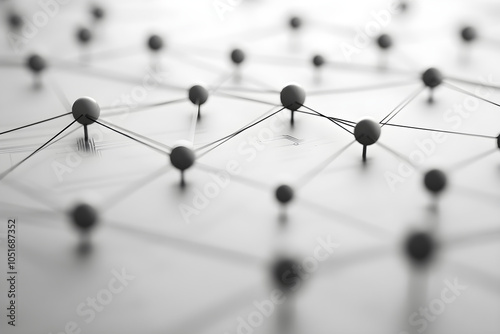 Minimalistic view of a circuit board with connected nodes, showcasing technology and innovation in a sleek monochrome design