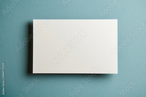 Minimalistic white canvas hanging on a blue wall, ideal for art displays or presentations