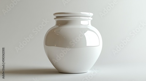 Minimalistic white ceramic jar with soft shadows on a clean background
