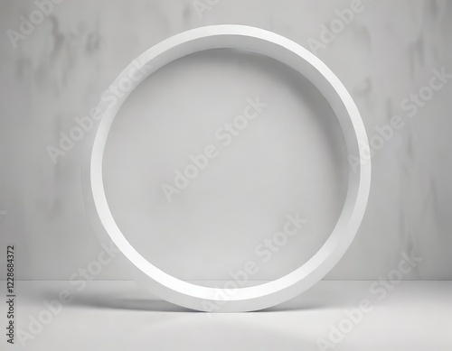 Minimalistic white circle on empty background with soft shadows, circle, shadow, simple, blank