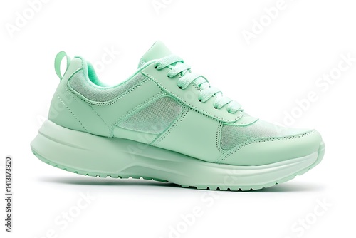 mint, green, athletic, sneaker, sleek, detailing, footwear, sporty, comfortable, footgear, trendy, fashionable, versatile, lightweight, practical, casual attire, active, iconic, comfort, flexible, relaxed, performance, activewear