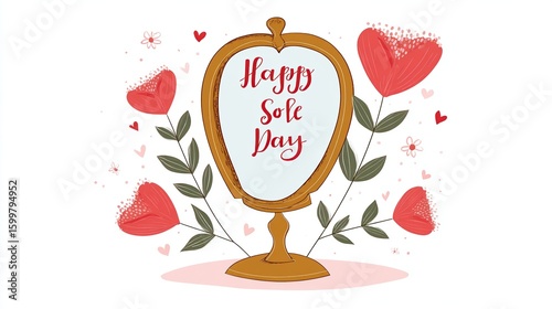 Mirror reflects "Happy Sole Day" surrounded by red flowers and heart doodles