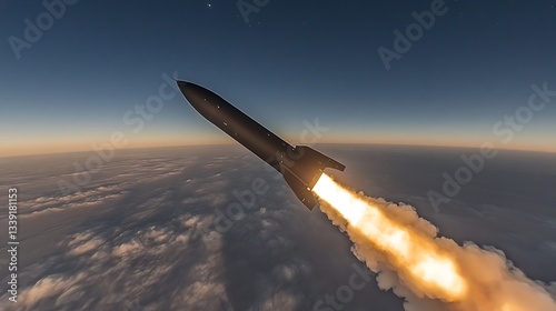 missile, launch, cloud, sunset, aerospace, sky, space, flight, technology, rocket, warfare, defense, weapon, military, science, future, innovation, power, engine, flames, explosion, projectile, orbit, horizon, up high, atmospheric, burn, smoke, blast