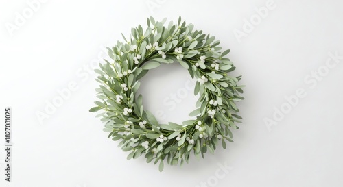 Mistletoe Wreath On White Background For Holiday Festive Decorations