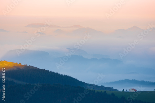 forest, misty, tree, mist, basque, landscape, country, pine, basque country, winter, cold, spain, north, nature, morning, mountain, wood, hill, layer, biscay