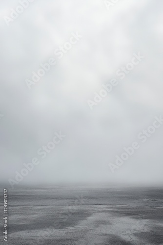 Misty Atmospheric Landscape with Gray Sky and Calm Water Surface