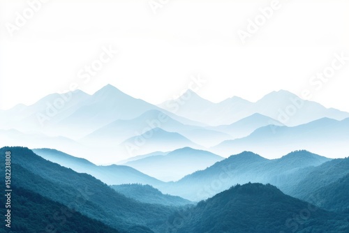 Misty Blue Mountain Layers Landscape Serenity Nature Travel Outdoors Adventure on white background. Generative Ai