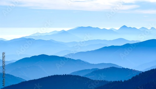 Misty blue mountain range