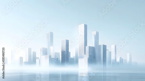 Misty Cityscape with Towering Skyscrapers and Serene Atmosphere