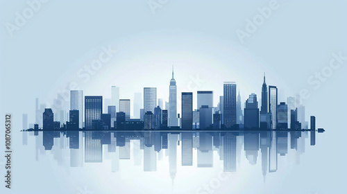 Misty dawn over a futuristic city skyline surrounded by clouds at sunrise Modern skyline building banner with eye catching view