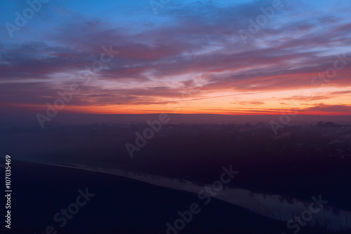 twilight, peaceful, haze, home, rural, settlement, panorama, gloaming, cloudscape, riverside, flowing water, atmosphere, air, fog, nightlight, house, darkness, calmness