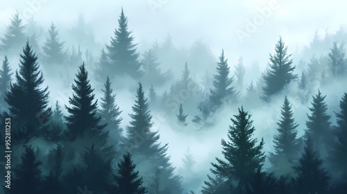 Misty forest in the fog. Forest. Illustration