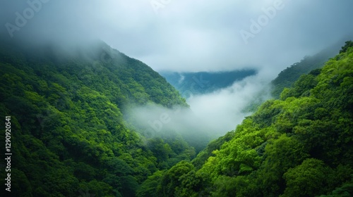 forest, landscape, vale, mist, fog, nature, green, tree, mountain, lush, scenic, overcast, atmospheric, dense, foliage, hill, panorama, environment, wilderness, tranquil, quiet, peaceful, view, remote, terrain, timberland