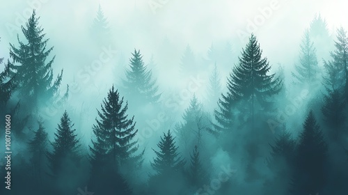 Misty forest-inspired abstract background with fading tree silhouettes and soft greens, 8k, high detail