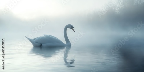 Misty lake swan reflection