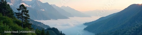 Misty low clouds cling to mountain tree branches, scenery, mountain, landscape