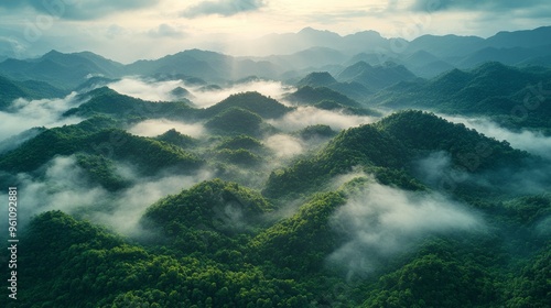 mountain, mist, fog, hill, forest, green, nature, landscape, aerial, view, dawn, sunrise, sky, cloud, light, gold, soft, tranquil, peaceful, serene, beautiful, scenery, dramatic, lush, vibrant, wild, remote, natural, scenic, travel, adventure, inspiration, photo, background, environment