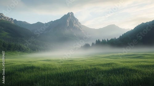 Misty Mountain Meadow: A Serene Landscape