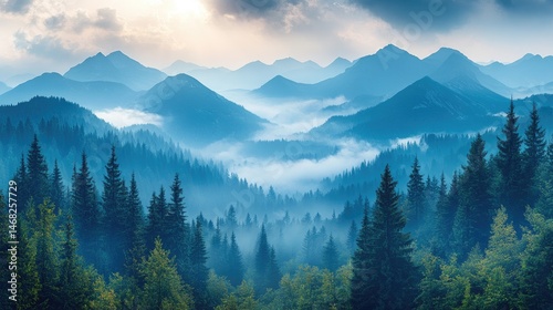 mountain, mist, forest, tree, peak, vale, blue, sky, cloud, sunrise, sunset, landscape, nature, scenery, panoramic, vista, tranquil, serene, quiet, atmospheric, hazy, dense, silhouette, evergreen, pine, foliage, layer, highland, horizon, sunlight, shadow, light, colours, depth, perspective, elevation, viewpoint, beauty, immensity, calm, illumination, huge
