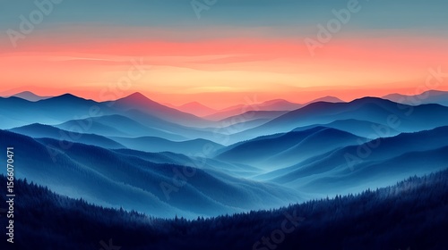 mountain, sunrise, sunset, blue, fog, mist, nature, sky, landscape, peak, view, vale, horizon, forest, tree, beauty, colours, light, warm, calm, tranquil, serenity, environment, panorama, natural, dramatic, photo, image, scenic, travel, adventure, peace, quiet, illustration, design, mountain, cloud, morning, cloud, hill, sun, dawn, evening, winter, snow, misty, dusk