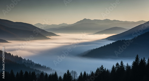 Misty Mountain Valley Sunrise: Scenic Landscape Photography