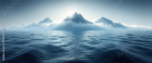 mountain, fog, water, landscape, nature, ocean, cold, blue, white, cloud, mist, peak, scene, view, glacé, icy, weather, winter, alpine, rocky, scenic, misty, dramatic, atmospheric, huge, still, peaceful, silent, serene, remote, isolated, beautiful, grand, wilderness, exploration