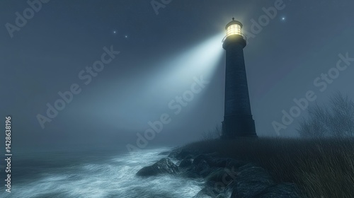 lighthouse, night, fog, sea, coast, light, beam, tower, dark, misty, ocean, wave, rock, shore, guide, journey, hope, beacon, solitude, serenity, calm, quiet, mystery, tranquil, inspiration, guidance, vision, future, strength, resilience, determination, safety, navigation, travel, adventure, moody, scenic, still, star, nature, dramatic, inspiring, wisdom, power