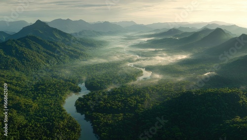 misty, rainforest, vale, river, mountain, green, lush, fog, sunrise, aerial, landscape, nature, scenic, tranquil, majestic, pristine, wilderness, cloud, sunlight, photo, view, panorama, dense, tree, jungle, tropical, elevation, high, perspective, beauty, wild, expansive, serene, calm, forest, riverbed, water, flowing, canyon, emerald, huge, hidden, deep, morning, light, shadow, humid, amazon