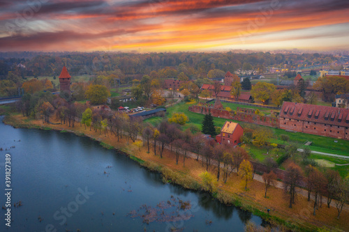 riverside, polish, tower, mediaeval, destination, brick, historical, town, gate, river, battlement, knight, european, fortified, landmark, history, castle, day, poland, panorama, old, dusk, sunset, building, reflected, fortress, architecture, blue, aerial, drone, tour tourism, ancient, water, fortification, exterior, europa, landscape, facades, travel, wall, unesco, pomerania, heritage, order, summer