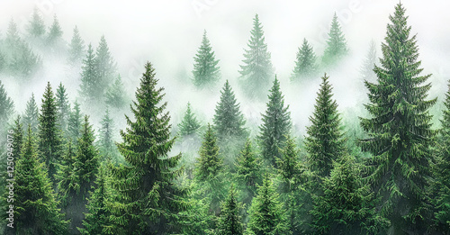 forest, fog, tree, green, nature, landscape, mountain, mist, scenic, timberland, environment, outdoors, coniferous, pine, spruce, mystery, dreamy, aethereal, atmospheric, calm, peaceful, tranquil, serene, foliage, wilderness, evergreen, panorama, blurred, abstract, gradient, overcast, cloudscape, wood, background, dense, horizon
