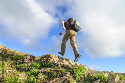 active, hike, summer, activity, upward, man, walk, mountain, dynamic, hiking, ongoing, countryside, energetic, outdoors, backpack, equipment, vacationer, powerful, dynamism, alone, hillwalking, recreation, run, sunshine, sunny, athletic, journey, trekking, hike, alpine, alpen, loose, laid back, ridge, walk, go up, climb, step