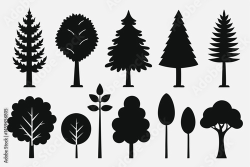 Mixed Tree Silhouette Set – Variety Forest Trees Illustration Pack