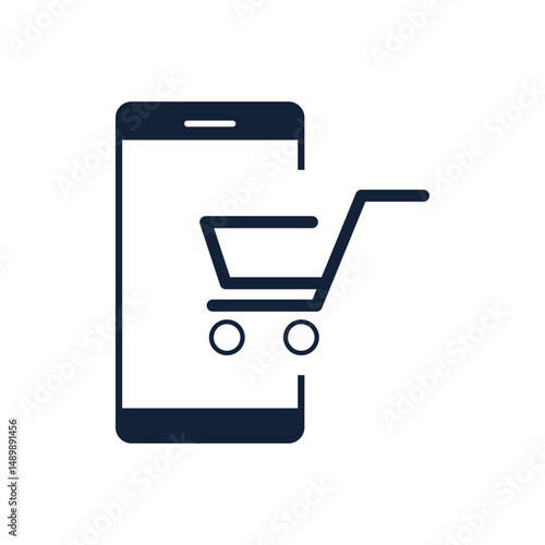 Mobile Shopping Vector – Shopping Cart Inside Smartphone Screen, E-Commerce App Icon Illustration