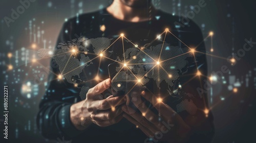 Mobile smart phone with global network connection and innovative communication concept.