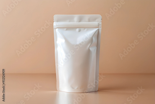 Mock up empty white food zip bag standing, isolated on pastel background, Ai Generated Images